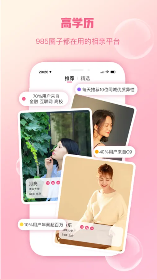 源自清华、985圈子都在用的相亲交友平台。专注于服务高学历优秀青年,通过严格资料审核认证、精准定位用户群体,提供真实&优质&高效的脱单恋爱服务,致力于为不愿将就的你,找到最好的爱情。