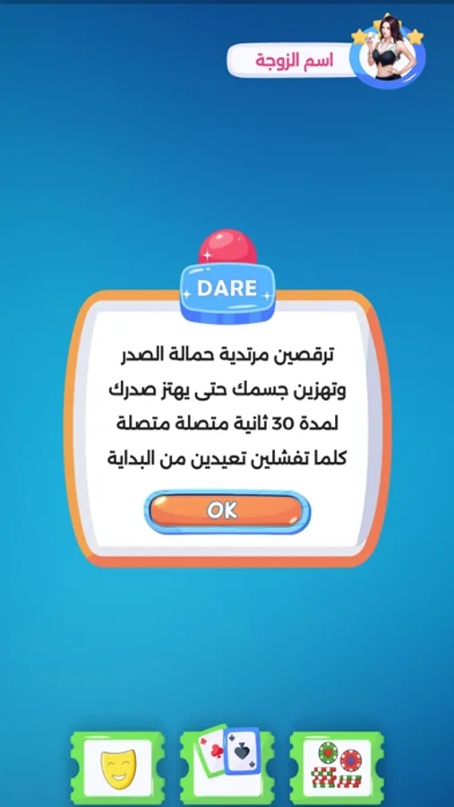 صراحة أم جرأة هي لعبة الإثارة والتشويق مصممة خصيصاً للأزواج الذين يرغبون في تحسين علاقتهم الحميمة وكسر الروتين والملل في العلاقة الحميمة ، اللعبة مطورة بشكل جديد هدفها الرئيسي هو زيادة المحبة والاشتياق بينهم . تقوم هذه اللعبة على مبدأ التحدي الجريء والحوار الصريح بين الزوجين، والذي يساعد على كشف الرغبات المكبوتة وتعزيز الحوار بينهما، ويؤدي إلى زيادة الثقة بينهما. تتكون اللعبة من عدد كبير من الأسئلة والتحديات الجريئة التي تطرحها اللعبة بين الزوجين، وبطاقات المساعدة التي تعتمد على الحظ ، من خلال وسيلتين مساعدة (تبادل الأدوار ، تكرير الدور) وتتعلق هذه التحديات بمختلف المجالات الحميمية مثل العلاقة الجنسية، الحب، الرومانسية، الثقة، والشخصية والكاريزما . وتهدف الأسئلة إلى زيادة التواصل بين الزوجين وتحفيزهما على التحدث عن أشياء مهمة لم يسبق لهم الحديث عنها. لصقل الشخصية وجعلها جذابة سيتم كشف الاهتمامات مثل الملابس والموضة والرياضة اللعبة هي لعبة مرح وتسلية تستهدف العريس والعروس المقبلين على شهر العسل ويرغبون في بعض من الجنون اللعبة مهمة للذين يعانون من الفتور والملل وكآبة الروتين في العلاقة الزوجية وللباحثين عن العواطف والمشاعر والأفكار الرومانسية تعتبر من أهم الألعاب الزوجية وهي سهلة جدا (شكة دبوس) ومع ذلك تحتاج مهارة في اللعب وذكاء في استخدام وسائل المساعدة (بطاقات الحظ)