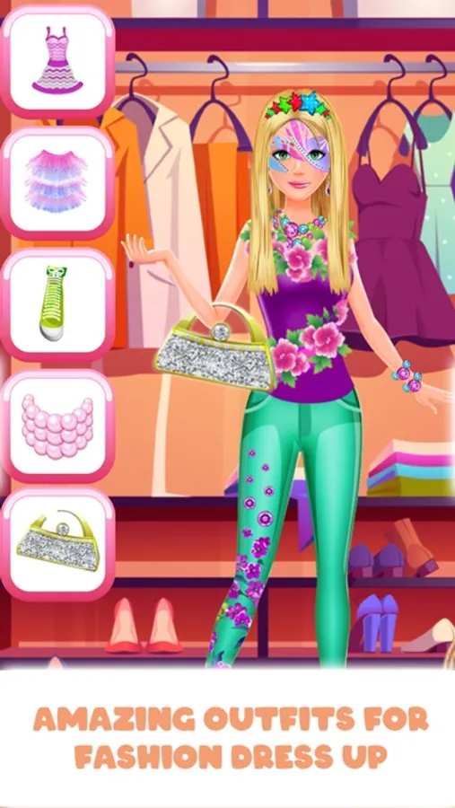 Match patterned dresses, glitter crop tops, and pearl earrings with the cutest handbags and high heels in fashion games for girls!