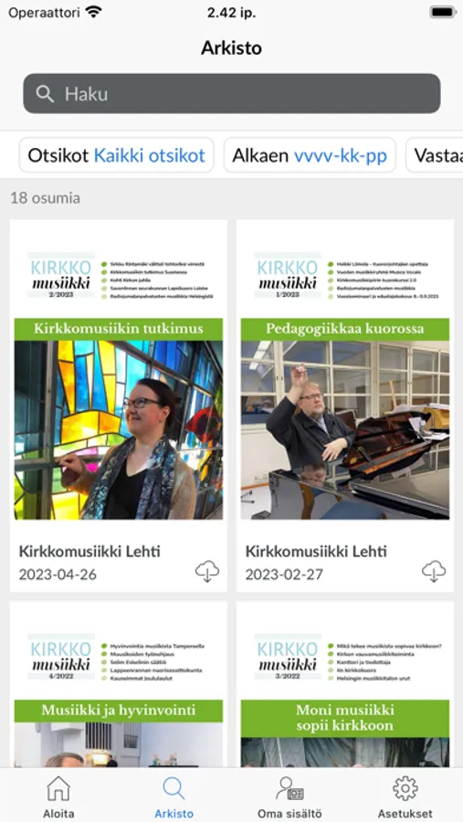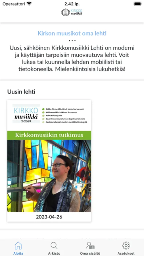 Kirkkomusiikkilehden sovelluksen kautta saat ladattua lehden näköisversiot iPad- ja iPhone-laitteellesi.