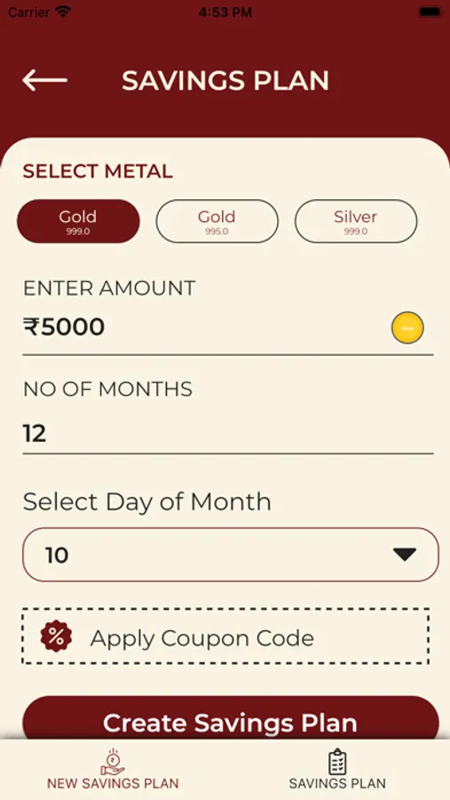 Customers can create an Monthly Saving Plan (SIP) in the App.