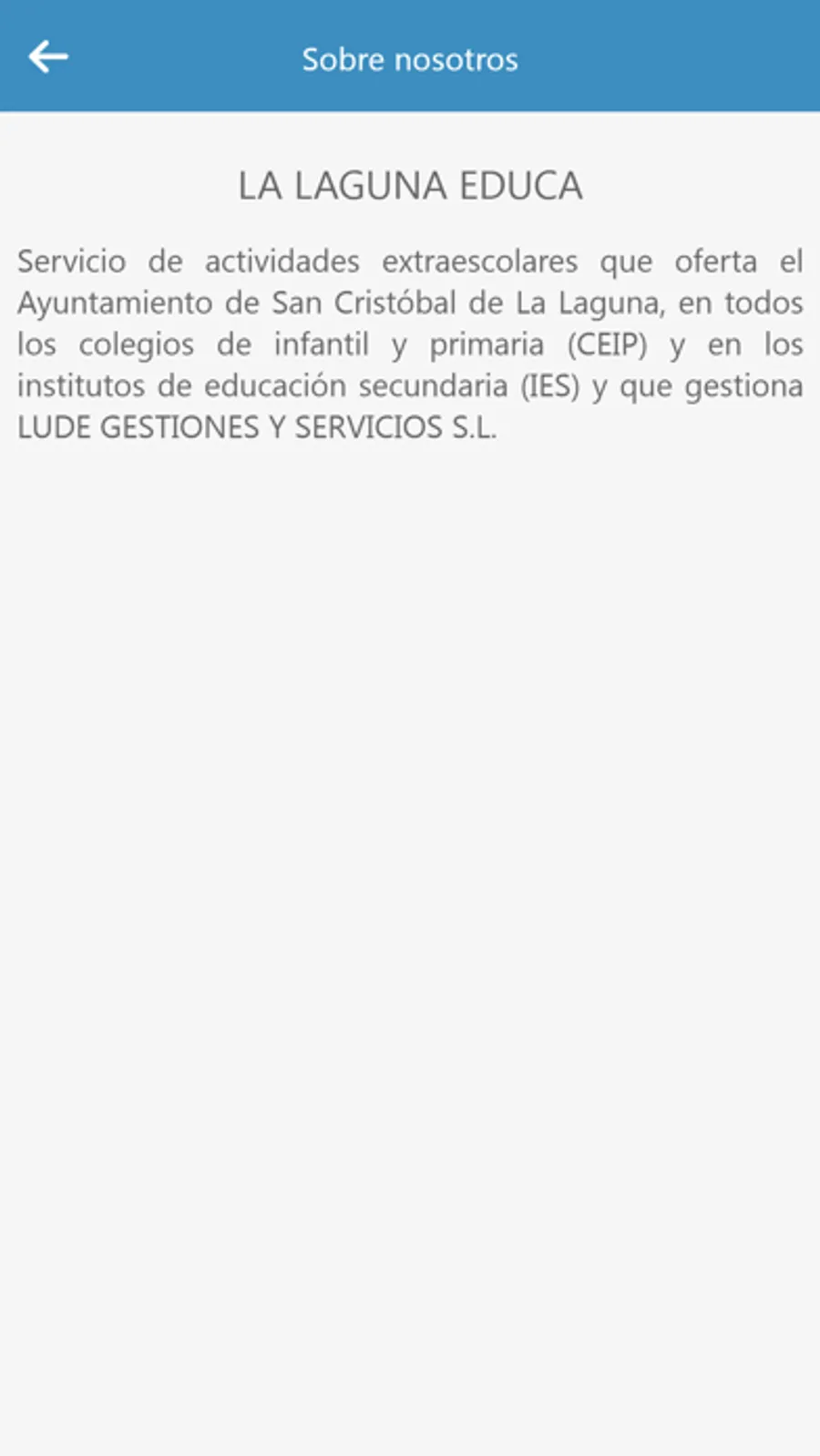 Servicio de actividades extraescolares que oferta el Ayuntaminto de San Cristóbal de La Laguna, en todos los colegios de infantil y primaria (CEIP) y en los institutos de educación secundaria (IES) y que gestiona LUDE GESTIONES Y SERVICIOS S.L.
