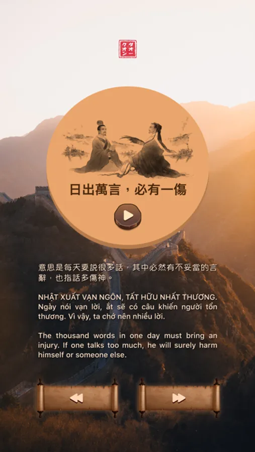Thành ngữ tiếng trung có từ xa xưa. Giàu nội hàm tư tưởng và mang đầy màu sắc của cảm xúc. Bằng cách sử dụng ứng dụng này, chúng ta có thể cùng nhau học những thành ngữ cổ xưa của Trung Quốc, trải nghiệm những câu chuyện đầy ý nghĩa trong cuộc sống.