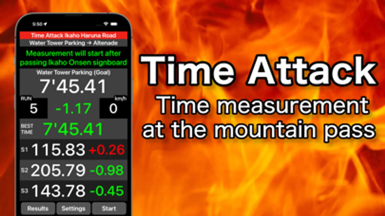 "Time Attack" is an application that measures the time while driving on mountain passes.