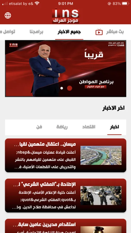 mobile app for ins tv channel to allow users to see the live stream from any place and follow the latest news.