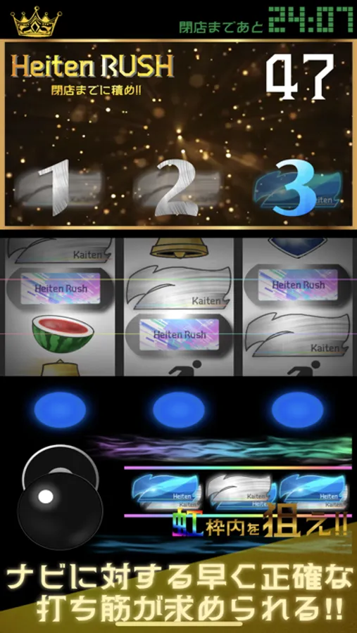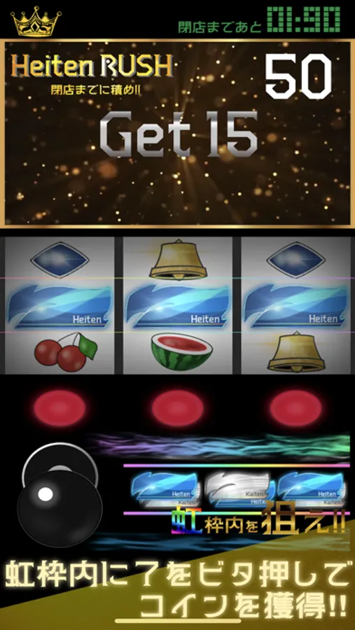 ナビ通り、リールの中央に引かれている虹色の線内に7をビタ押しするとコインをGETできます。