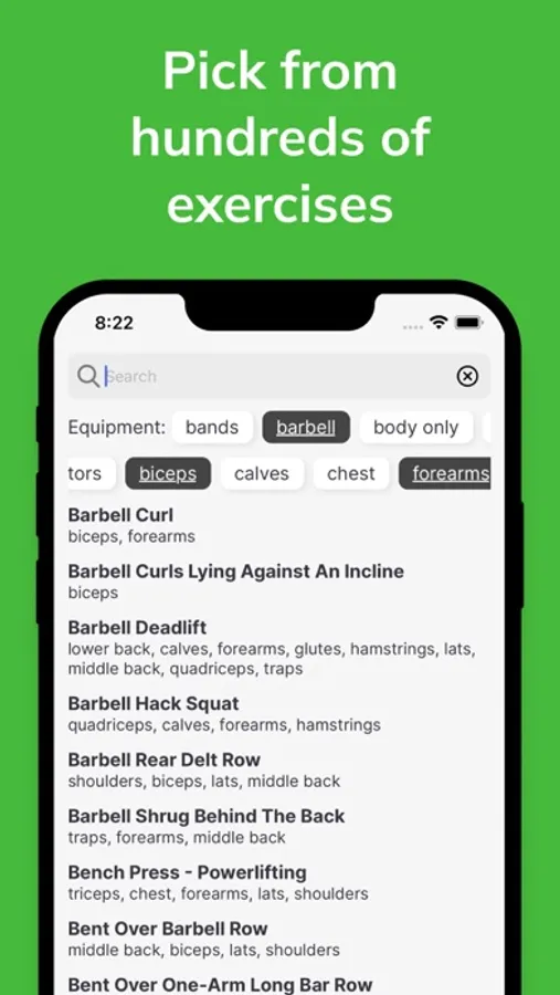 • Library of hundreds of exercises broken out by equipment needed and body parts to target