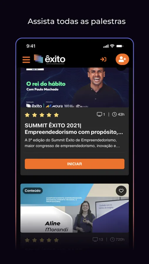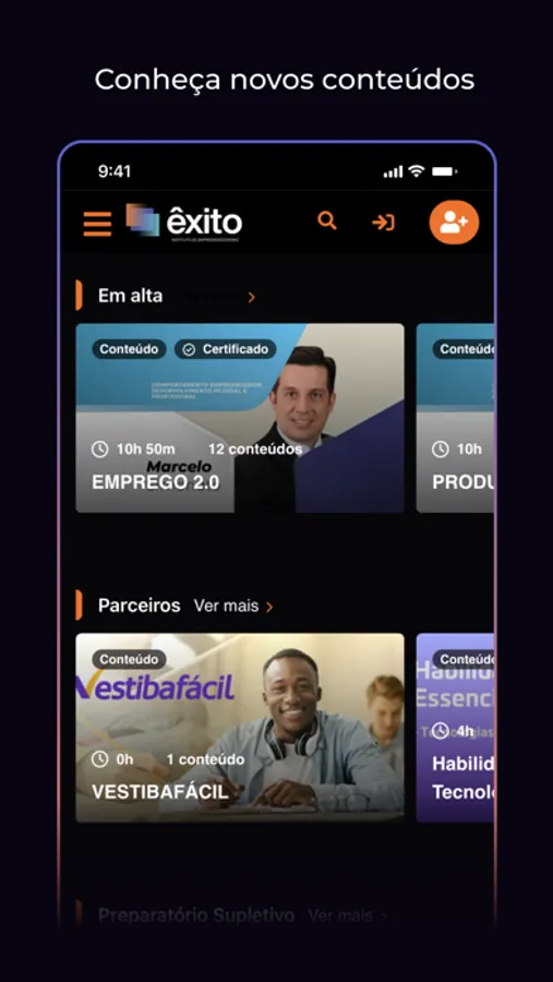 Os conteúdos disponíveis no Exito Play são apresentados por profissionais experientes no mundo dos negócios, tornando a plataforma uma fonte confiável de conhecimento empreendedor.