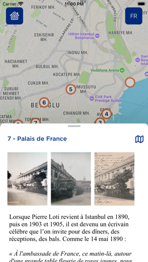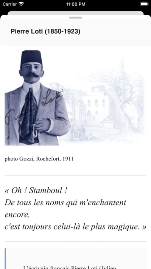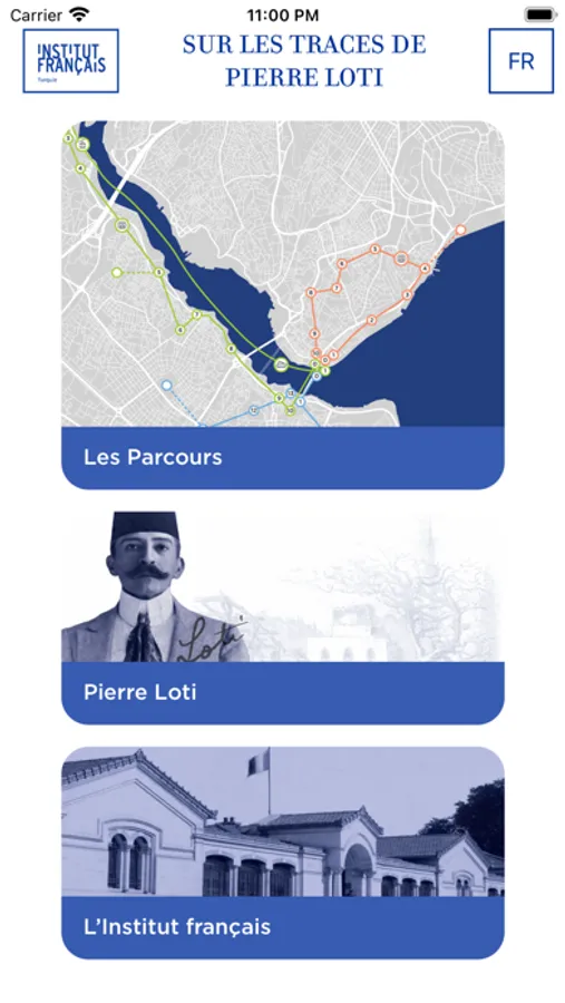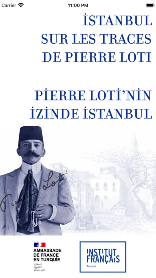 Cette application développée dans le cadre du 100ème anniversaire de la mort de l’écrivain Pierre Loti, vous permet de visiter Istanbul au temps de Loti à travers ses livres. Trois parcours permettent de suivre l’écrivain dans les lieux d’Istanbul qu’il a fréquentés, aimés et décrits. Téléchargez l’application pour découvrir les 3 parcours de visite proposés.