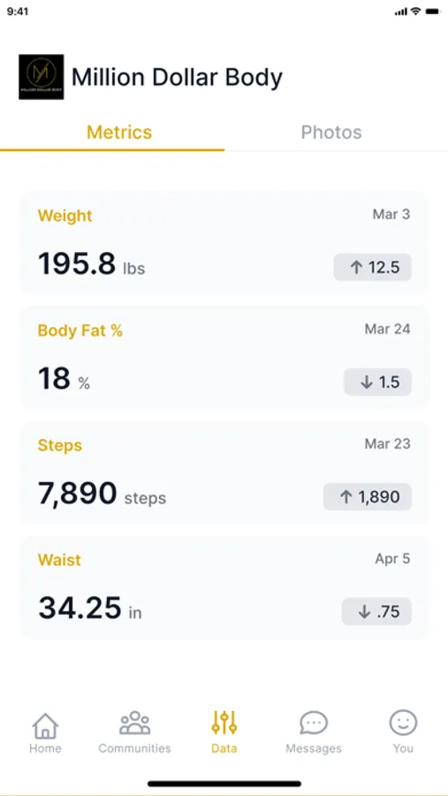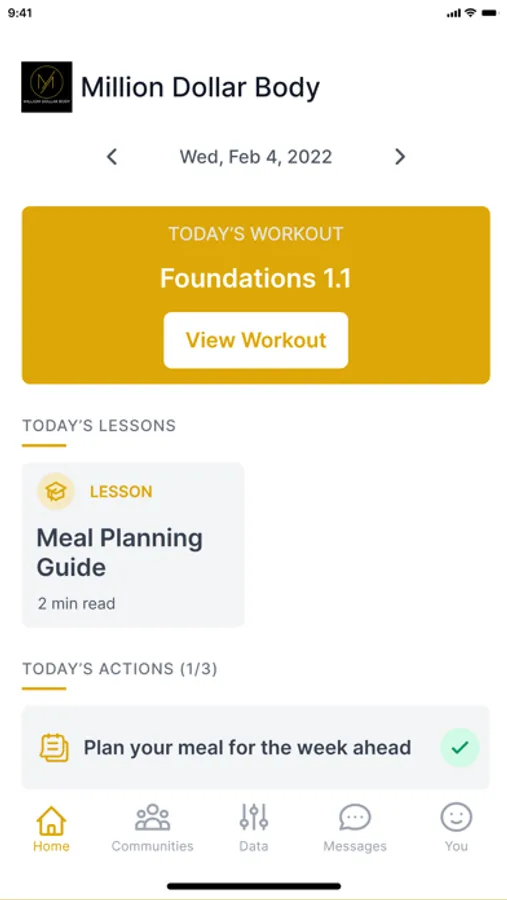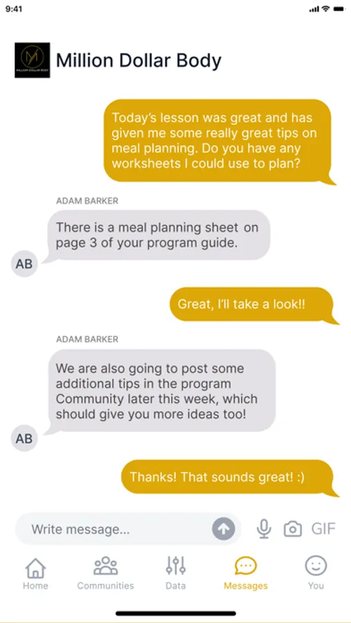 The Million Dollar Body app is designed for clients of trainers who have enrolled in the Million Dollar Body program. The app will send push notifications and prompt clients to answer yes/no question in regards to comply with healthy habits sent by your coach.