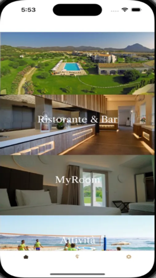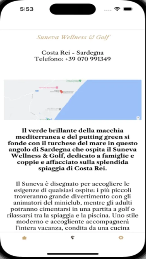 L’ app si offre come guida di tutti i servizi offerti, orari ristoranti e attività, menù, servizi concierge centro benessere, golf ed escursioni.