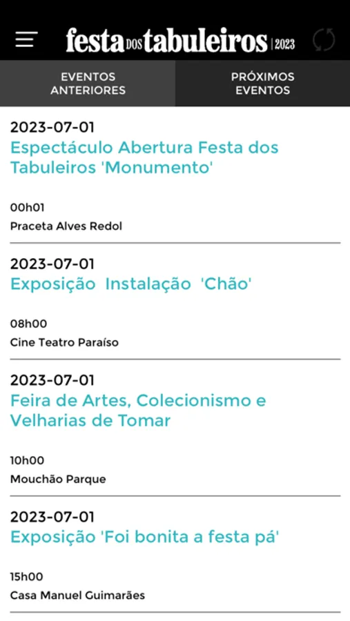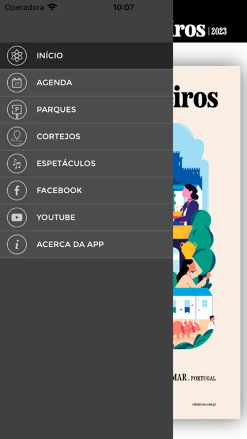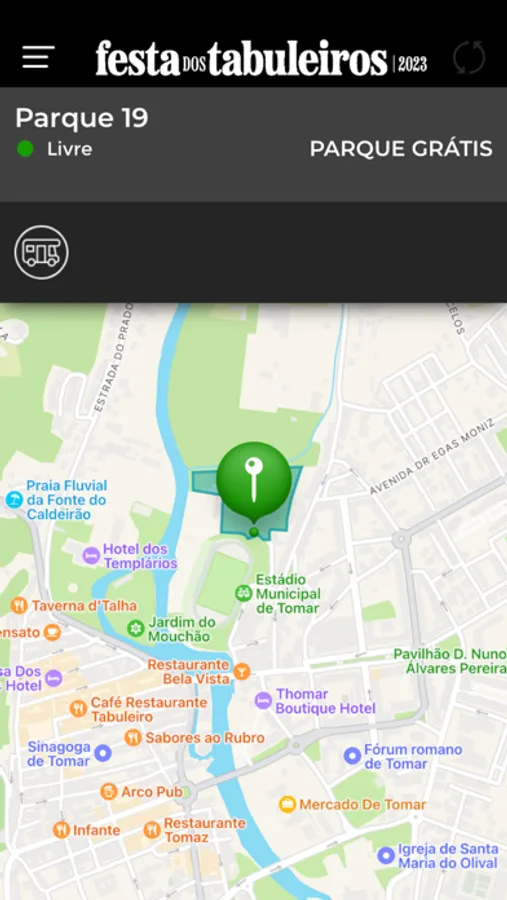 Nesta app poderá consultar a informação em tempo real da agenda (eventos anteriores e próximos eventos, com indicação de data/hora/local), dos espetáculos (indicação de data/hora/local), dos cortejos (indicação dos diversos cortejos e respetivos percursos) e parques de estacionamento para dia 9 de julho (com indicação do número do parque, localização, disponibilidade - livre/lotado, tipologia – ligeiros/autocarros – pago/grátis).