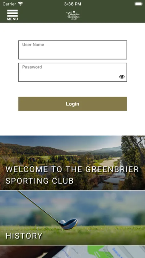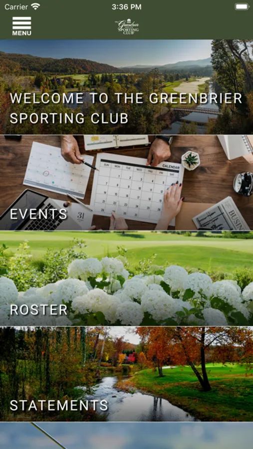 Welcome to The Greenbrier Sporting Club where the experience of our members is our primary focus. We have developed a custom app to enhance your experience on and off property. The Greenbrier Sporting Club App provides members with the ability to view their statements, access the membership roster, keep current on events at The Club and more. Use the App to connect with other members and receive notifications on upcoming Club events, all by the way of your handheld or tablet. This App requires a membership in The Greenbrier Sporting Club to activate.