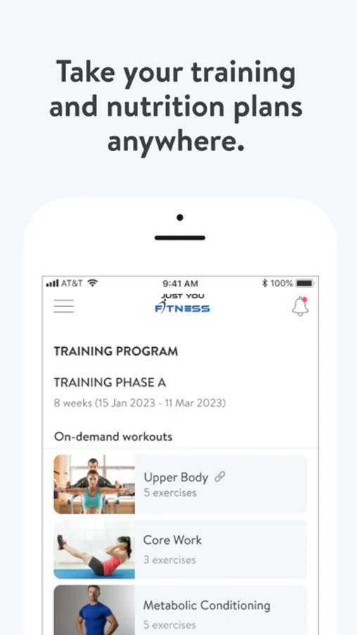 With the Just You Fitness App, you will have access to all the tools you need to help you reach your health and fitness goals! You can track your workouts, your nutrition, your lifestyle habits, measurements and results–all with the help of your personal trainer!