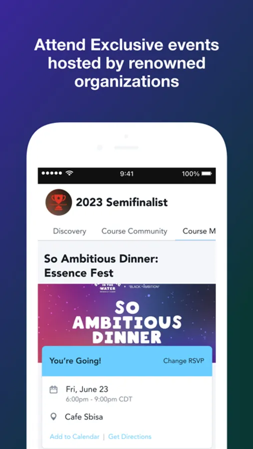 This platform is dedicated to the Semifinalists in the 2023 Black Ambition Prize Competition! Download this app to unlock access to a top-tier mentorship program, access to funding opportunities, an engaging community that feels like your tribe, and so much more.