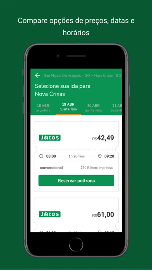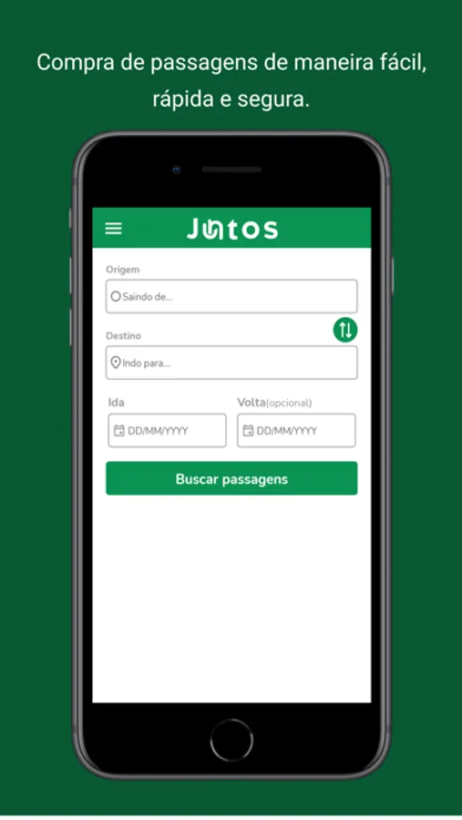 Aplicativo da operadora Juntos Transporte para venda de passagens rodoviárias.