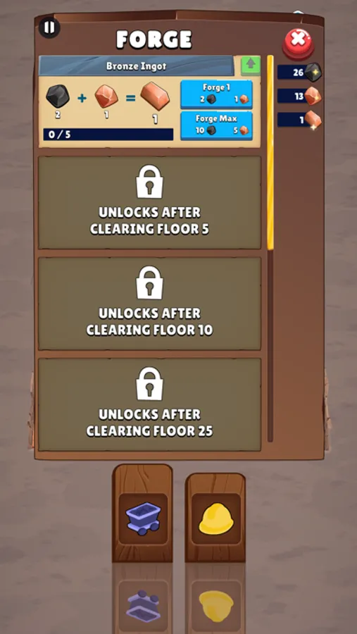 Start digging mines, buy miners, forge the mines in the quarry, finish mining the mines and win the game!