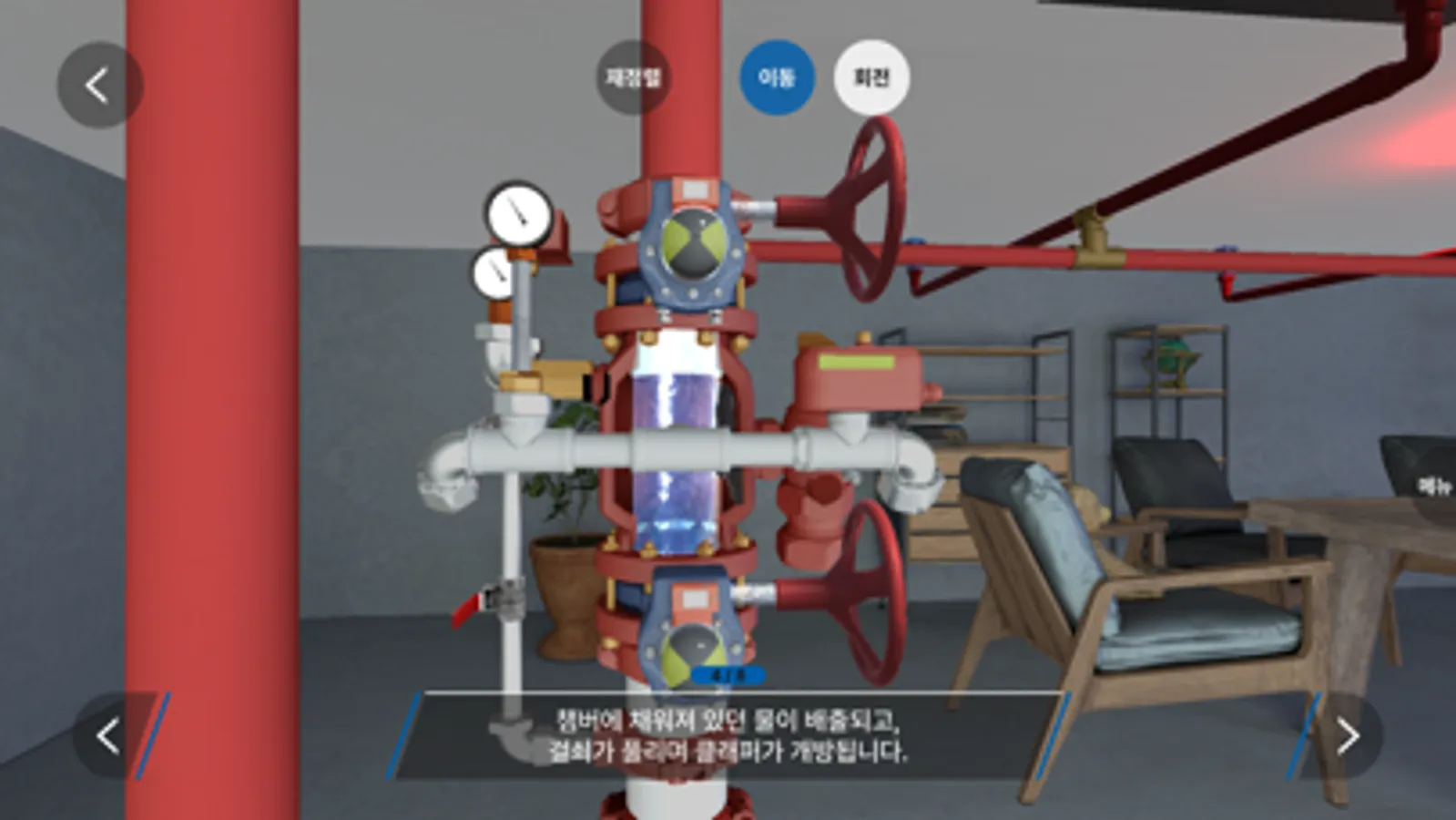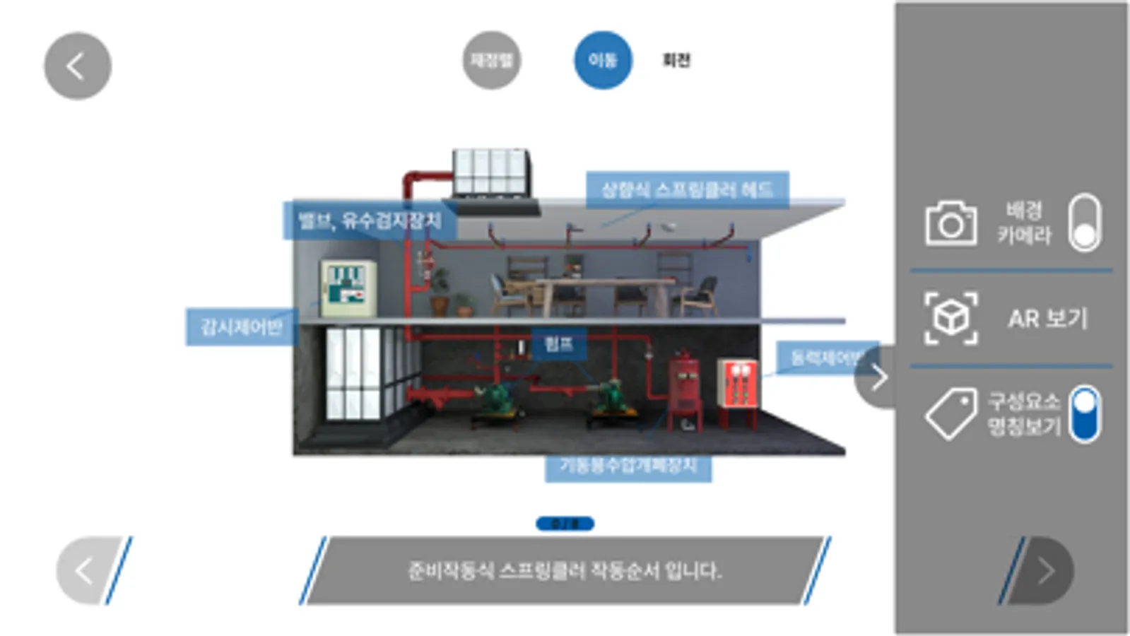 한국소방안전원 교육을 수강하는 교육생에게 설비에 대한 이해를 높이고, 실무능력 향상을 위해 실감형 콘텐츠를 제작하여 교육생에게 제공하기 위한 앱입니다.