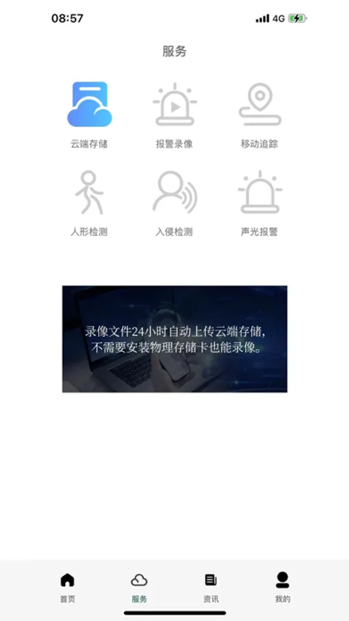 报警服务:移动追踪,可自动捕获物体运动轨迹,进行人形检测和入侵检测,并进行声光报警等;