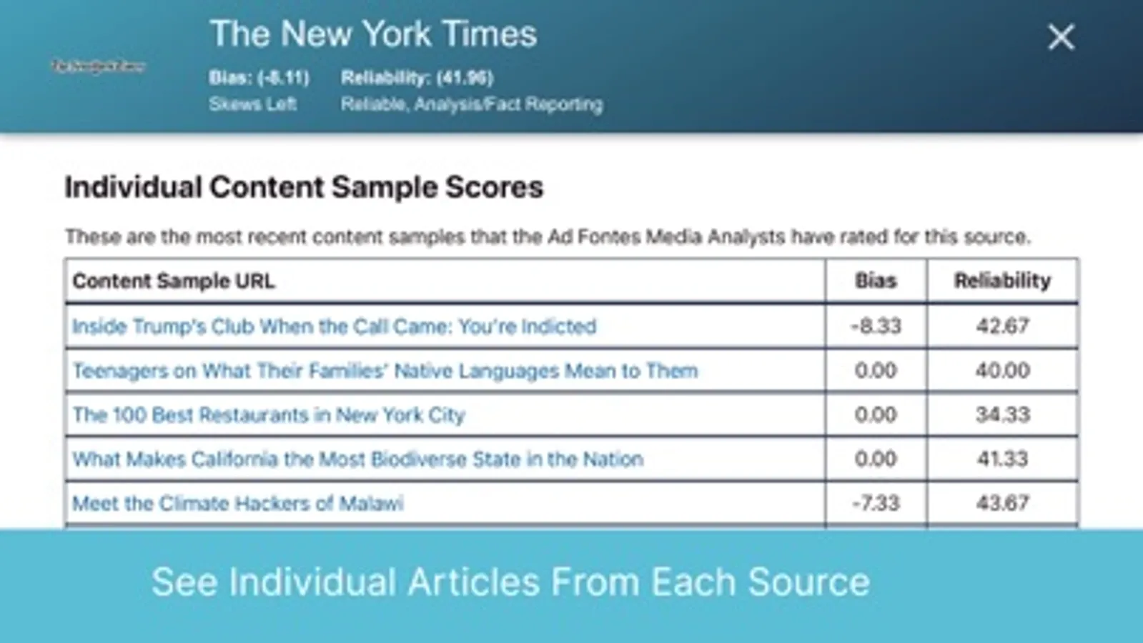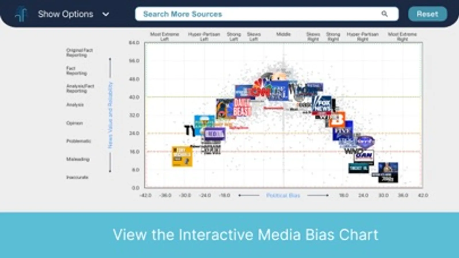 The Media Bias Chart app by Ad Fontes Media helps users gain a deeper understanding of the bias and reliability of news and news-like sources. An intuitive interface presents an extensive collection of news outlets along with their political bias and reliability assessments based on our robust methodology. This app equips users with the knowledge needed to critically evaluate news sources.