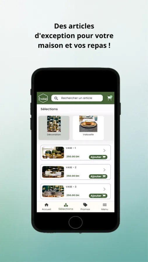 Transformez votre maison et vos repas en un espace chaleureux et convivial avec notre application À TABLE MAROC. Découvrez une sélection minutieuse d'articles de qualité supérieure qui répondront à tous vos besoins en matière de décoration intérieure et de vaisselle pour toutes les occasions.