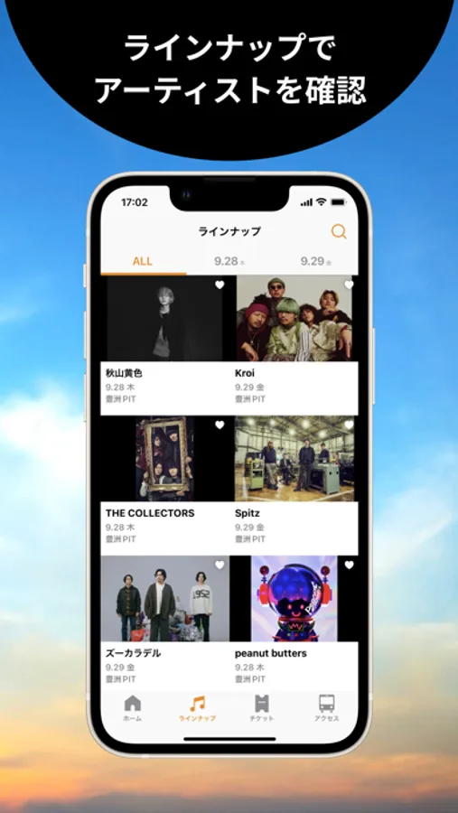 出演アーティストやグッズ情報、先行予約のご案内、チケットの発券・入場、インフォメーションなど、イベントを便利に楽しむための情報・機能が満載!