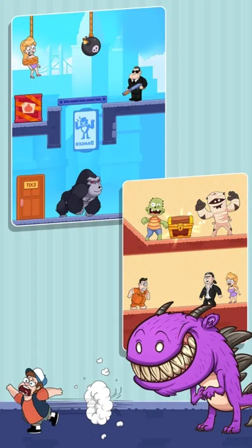 Nothing is impossible in this funny puzzle. It is the perfect challenging combination of IQ and logical thinking, reflexes, memory, and creativity. Stop following a single way of thinking, you have to imagine and break all the rules. Then the final solutions will surprise you!