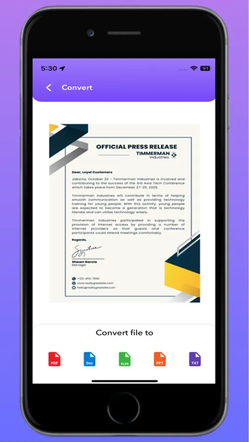 Easy sharing: Share your documents with anyone via email, cloud storage, or social media platforms.