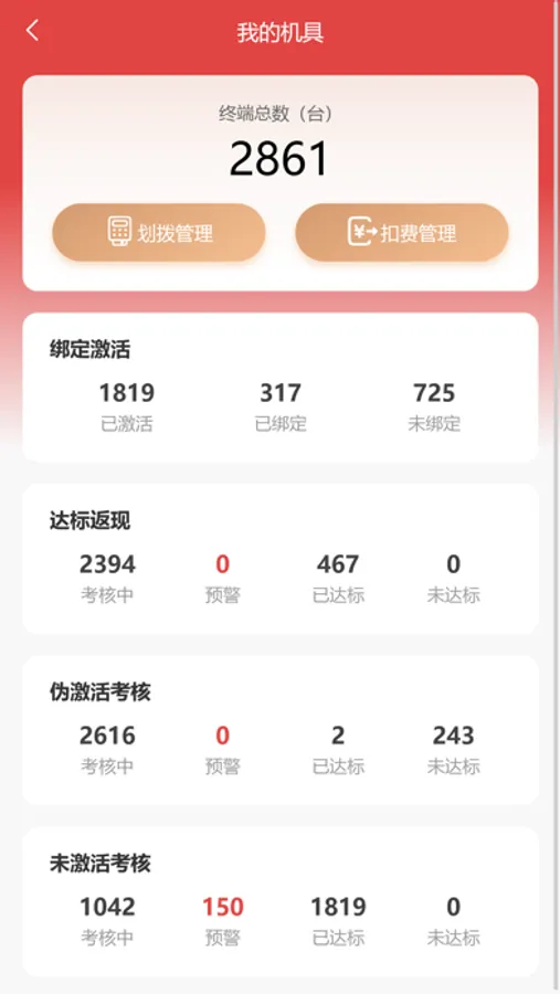 1、机具管理:管理机具下发、回拨,查看机具状态及流程情况;