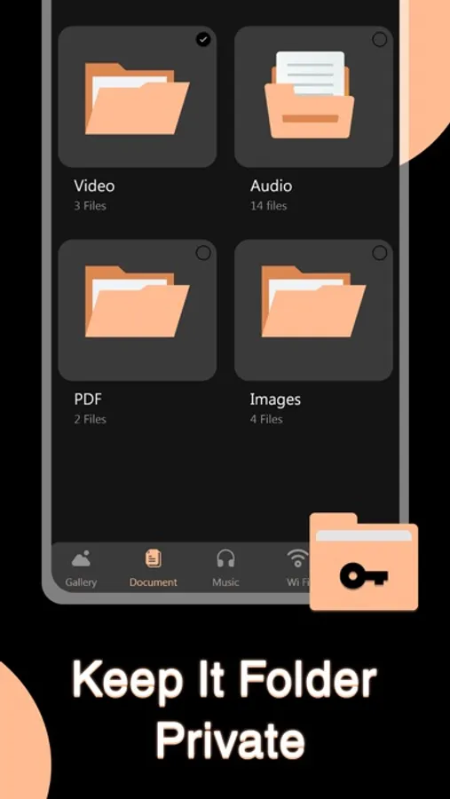 A built-in secret gallery allows you to organize, view and play all your hidden images and videos inside a protected and discreet interface.