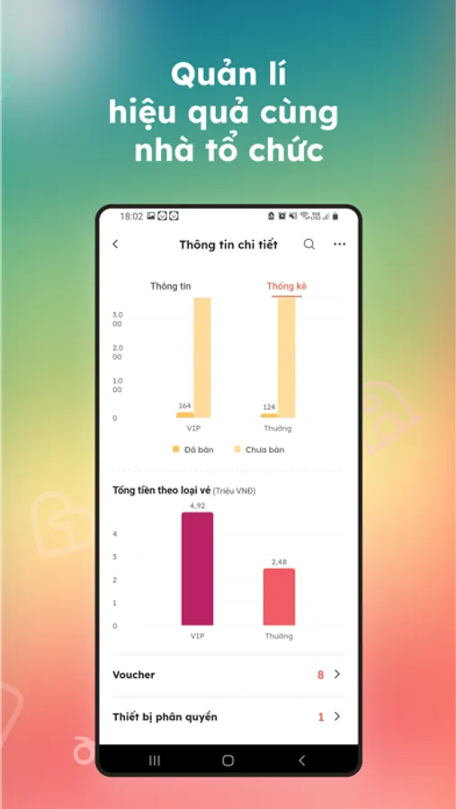 BoxOffice Admin là ứng dụng đa chức năng, được thiết kế đặc biệt để hỗ trợ quản lý doanh thu, quét check in và quản lý voucher cho các sự kiện. BoxOffice Admin cho phép các nhà tổ chức thu thập và phân tích dữ liệu doanh thu một cách dễ dàng, giúp tối ưu hóa quy trình bán vé và tăng cường hiệu suất kinh doanh sự kiện. Từ đó, người dùng nắm bắt được hiệu suất tài chính của sự kiện và có thể đưa ra các chiến lược về giá và marketing để tối đa lợi nhuận.