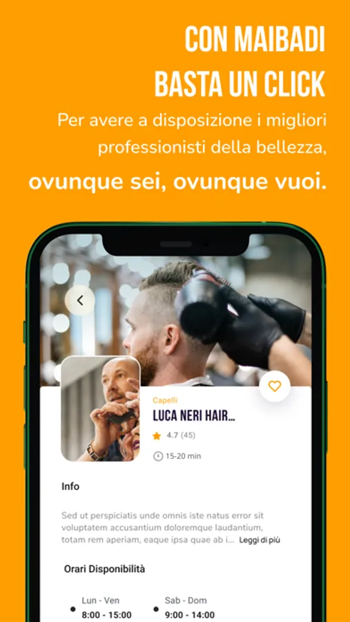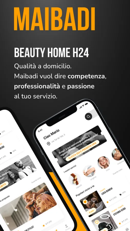 Scarica MAIBADI e con un semplice click potrai prenotare servizi beauty e wellness a domicilio in modo veloce e innovativo. Il cliente ha la possibilità di visualizzare i professionisti disponibili nella propria città, selezionare giorno/ora e prenotare il suo servizio preferito in comodità direttamente a casa o nel luogo indicato. Just Click & Relax!
