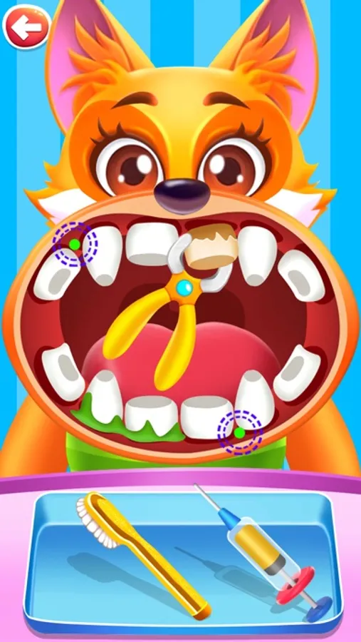 Hi, Zoo Doctor Kids Dentist Game for kids, have all dental tools in dentist office. The animals dentist will be grateful to you and very grateful. Also, we will tell and show what dental tools the kids dentist usually uses during the appointment to find bad teeth with carious, treat them, put braces and replace old teeth with new ones. Time to show your teeth doctor medical skills! Play dentist kids games and learn more about how to fix teeth. Doctor Dentist! you will learn how to brush teeth, remove tooth decay, drill teeth, place fillings, fight against bad odors and evil germs. There is also another curious operation in our game. Such as a Pet Doctor Dentist, will teach them not only to treat their pets with love and care, but also to protect their own teeth, do not forget to clean them several times a day, because going to the dentist is not the most pleasant pastime