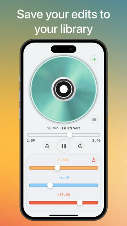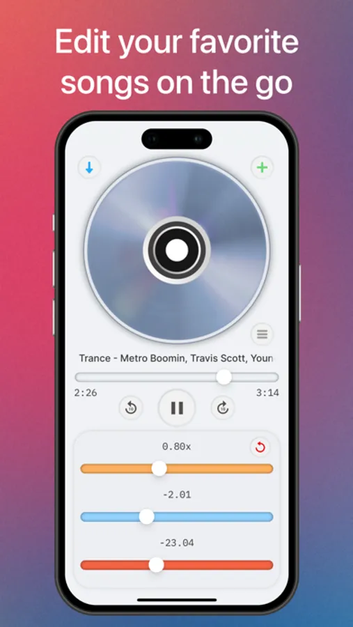Alinea Music is designed to be incredibly intuitive, even for those who are new to music editing. With a few simple gestures, you can speed up the tempo, slow down the beat, adjust the pitch, and add reverb. Every adjustment you make is reflected in the fun and vibrant rotating CD visualization, transforming your music editing experience into a visual treat.