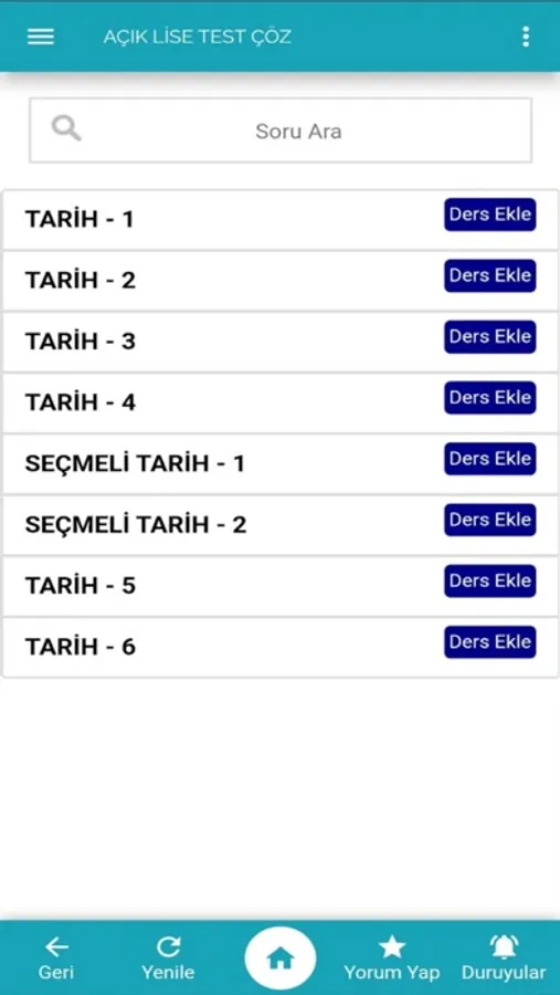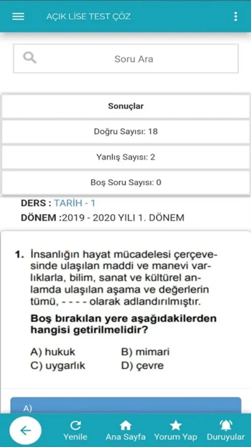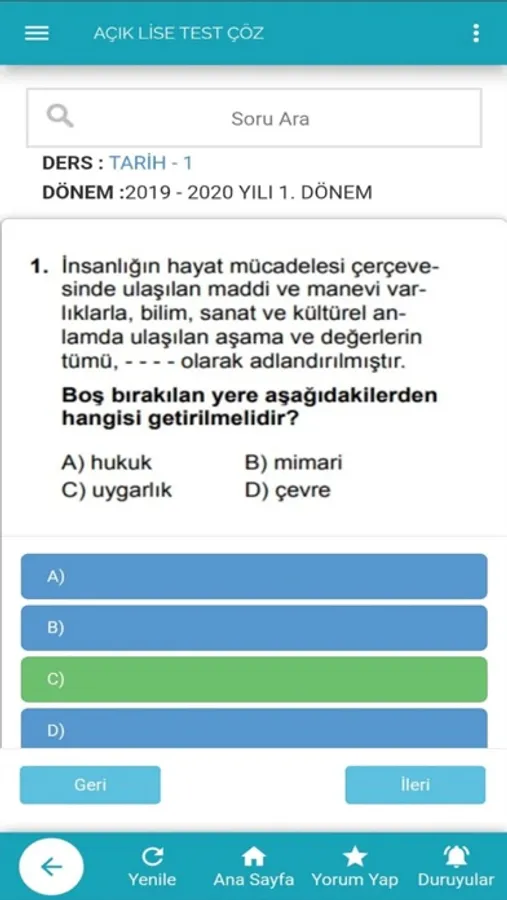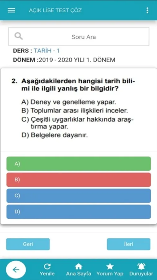 Daha önce sınavlarda çıkmış sorulardan ve çıkması muhtemel sorulardan derlediğimiz uygulamamızda tüm dönemlerin testleri;