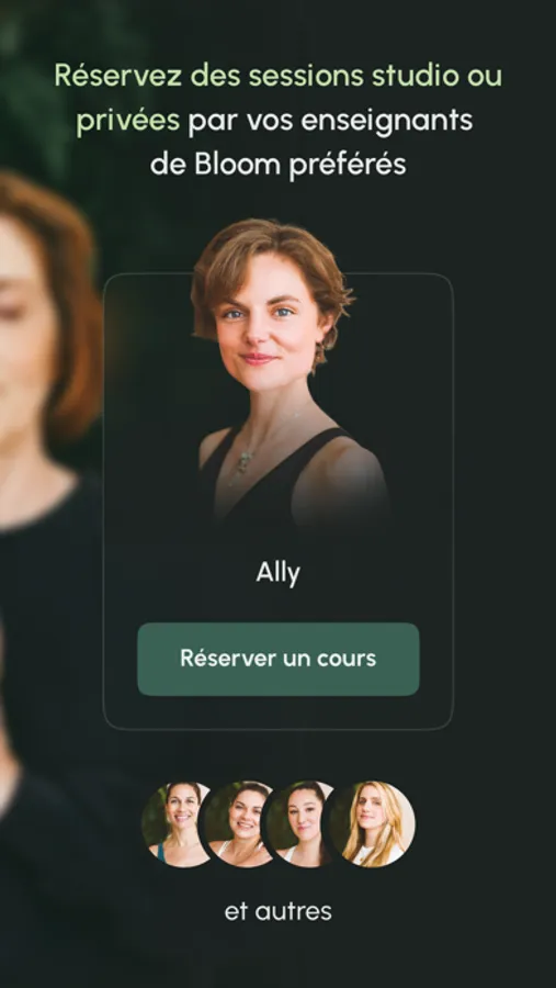Une des innovations majeures de cette application est la mise en relation qui permet aux utilisateurs de réserver un cours en studio ou individuel avec leurs enseignants préférés. Les séances collectives seront effectuées dans les studios Bloom. Les séances privées pourront se dérouler en studio, en virtuel ou ailleurs.