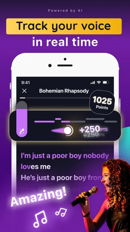 - Score real-time points and perfect your singing. Our algorithm will also calculate your pitch accuracy and give you a score!
