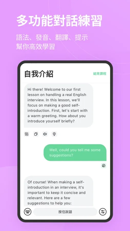 在這裡,你終於可以不用擔心文法和詞彙,暢所欲言和AI用英文對話。