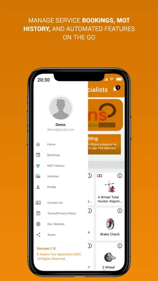 Track your MOT certificate and deadlines coming your way in one click. Get pop-up notifications for your MOT appointments and up-gradation of the vehicle. Explore through the app and find the ideal tyres from several tyre brands available for vehicles of all types in different sizes. Simply add the product or the service you wish to get in the service cart and get an overview of the prices then and there. You can also review your cart, service or product history and track other services through this app. Download the app now to avail exciting offers and great deals waiting for you in the Adams Tyre Specialists app.