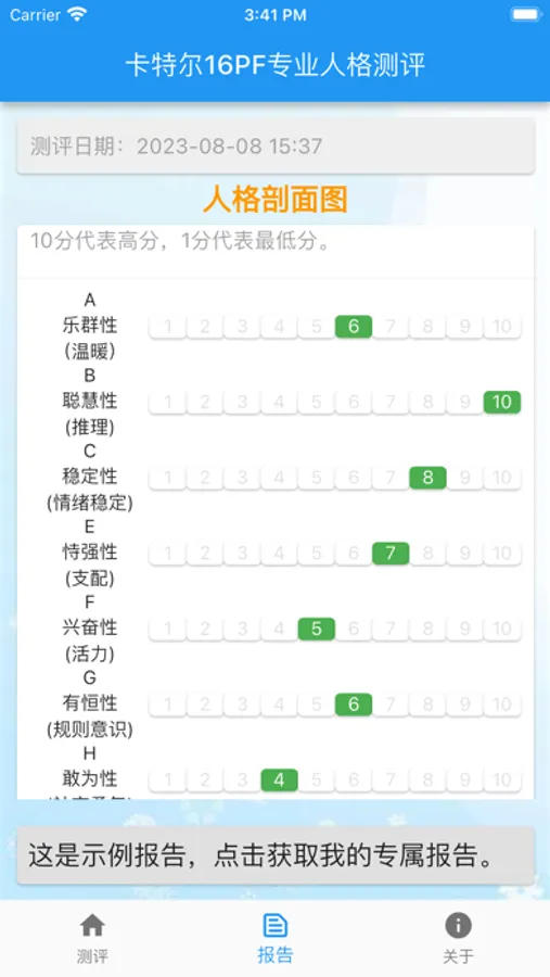 卡特尔16PF专业人格测评APP基于广为应用的卡特尔16维度人格理论,可以提供专业、可靠的人格测量。