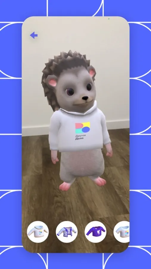 Виртуальный питомец - это игра с использованием дополненной реальности внутри сервиса Другое Дело. В рамках игры пользователи создают питомцев - ПИНов, учат их различным навыкам, параллельно также узнают что-то новое, кормят, одевают и глядят своих персонажей. Питомцы могут принимать различные позы, а пользователи делиться фотографиями с ними.