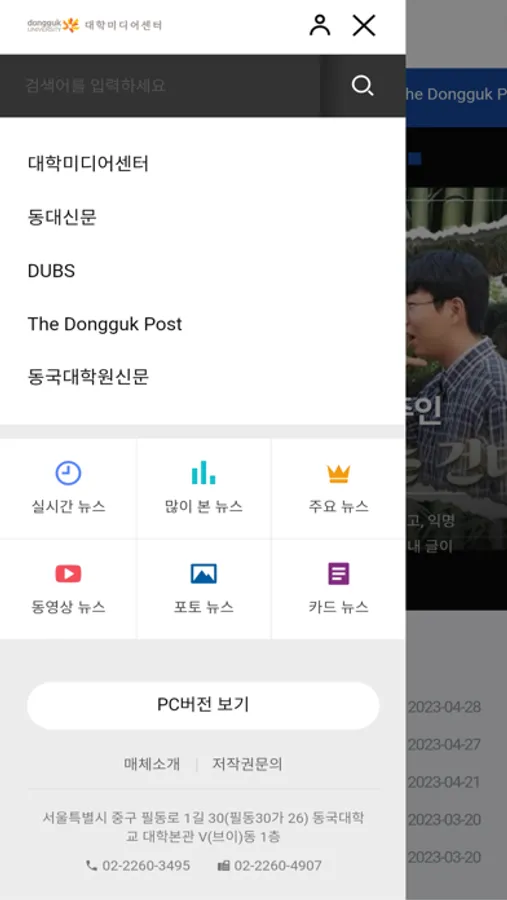동국대학교 대학미디어센터 뉴스포털 Screenshots