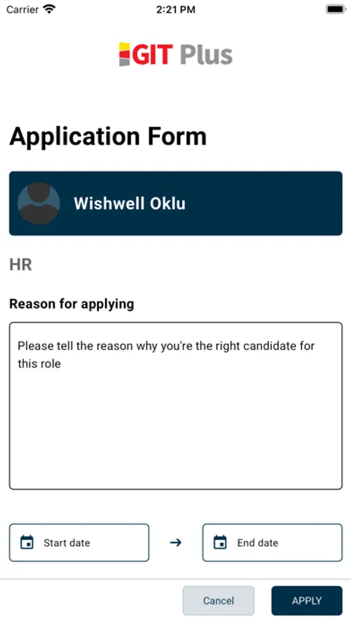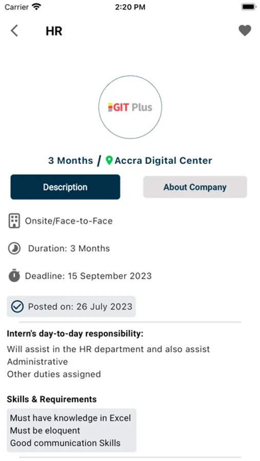 Description of the App: Gitplus Student Internship Management Mobile Application is designed to provide a platform for managing student internships. The App allows students to apply for internships, keep track of their applications, and receive notifications regarding their internship status. The App also provides internship providers with a means of managing internship applications and selecting suitable candidates.