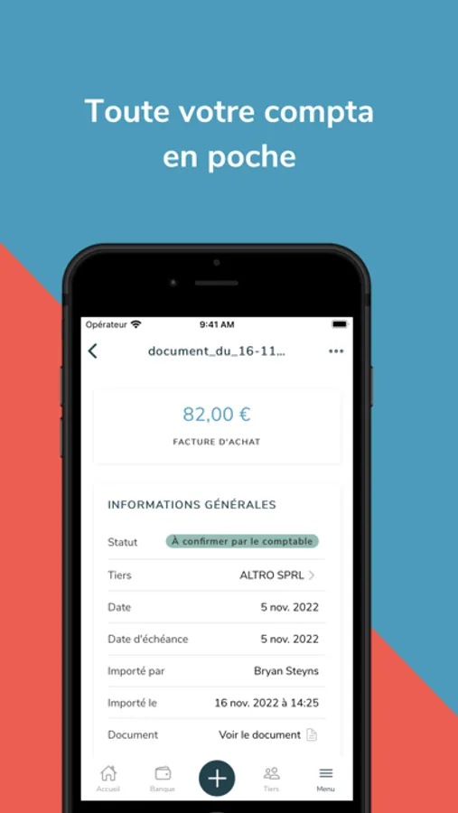 • Centralisez vos factures et autres documents dans un espace unique. Retrouvez vos historiques clients et fournisseurs en 1 clic.