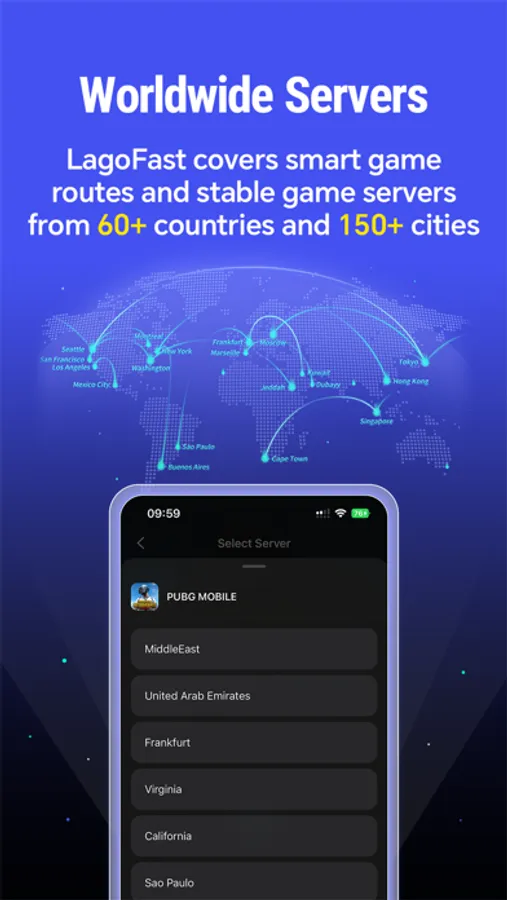 With game servers in over 60 countries and 150 cities, LagoFast Mobile ensures you're always connected to the best server for a lag-free gaming experience wherever you are.