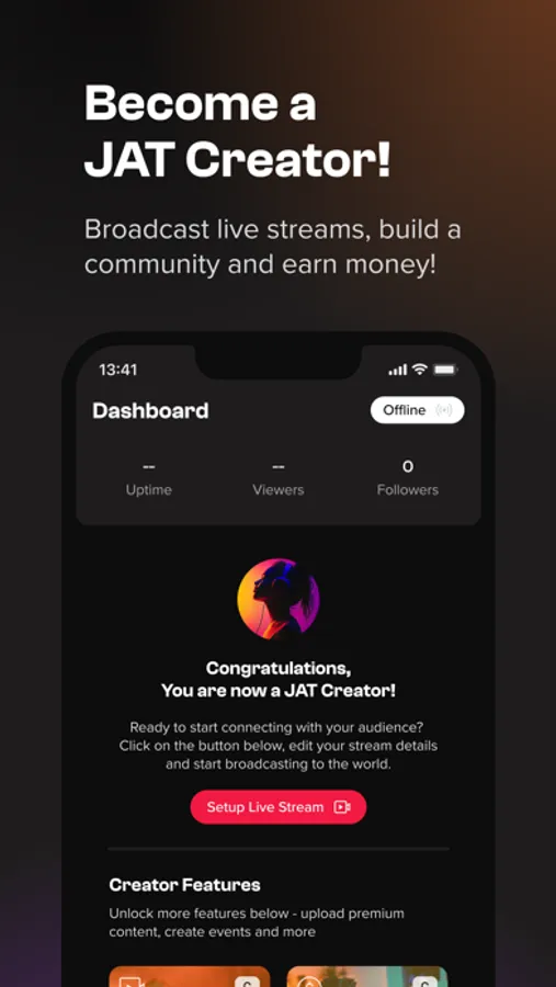 JAT revolutionizes how creators connect with audiences and monetize their passion. Our TikTok-style vertical video feed delivers endless entertainment while our powerful creator tools empower you to build your brand and earn real money from your content.