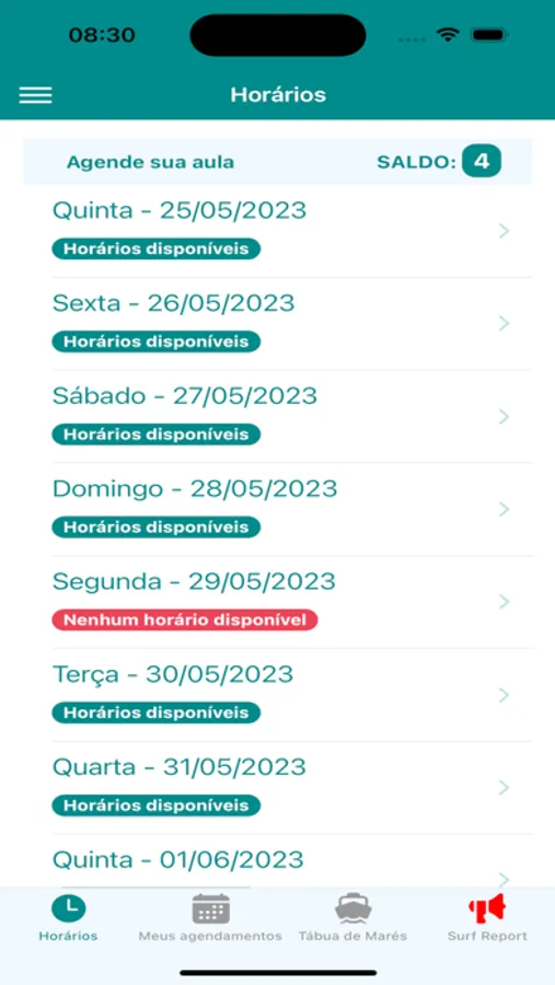- Agendar antecipadamente as aulas de surfe de seus alunos;