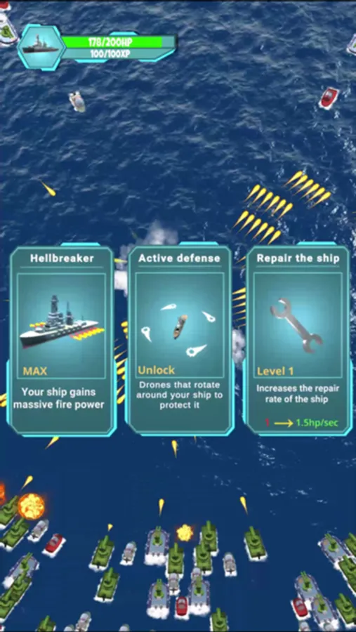Survival Ship, Move your ship to get close and shoot enemy ships, fun with lots of new power, defeat ships!