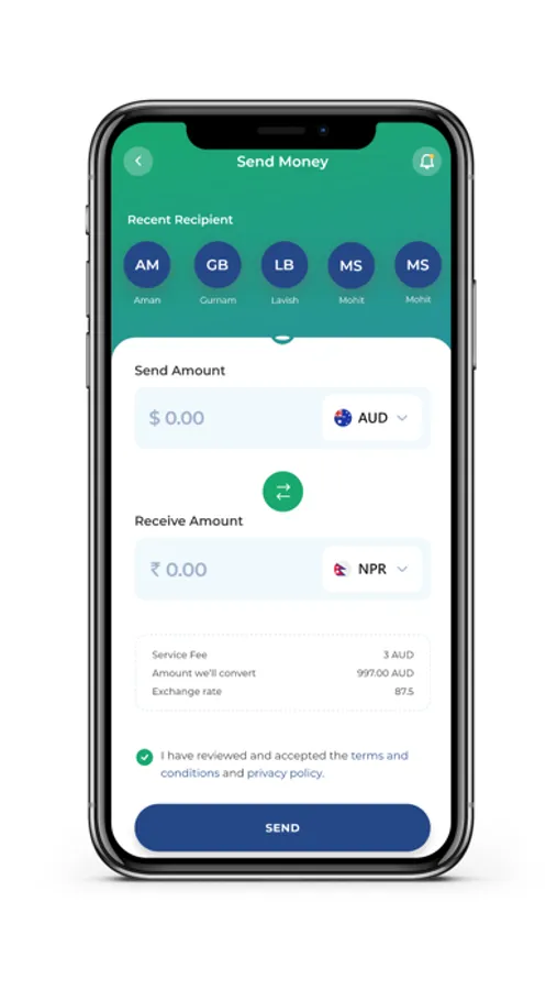 Add the amount you want to send and recipient’s details. Check the transaction fees upfront, and the estimated time your money will be delivered.