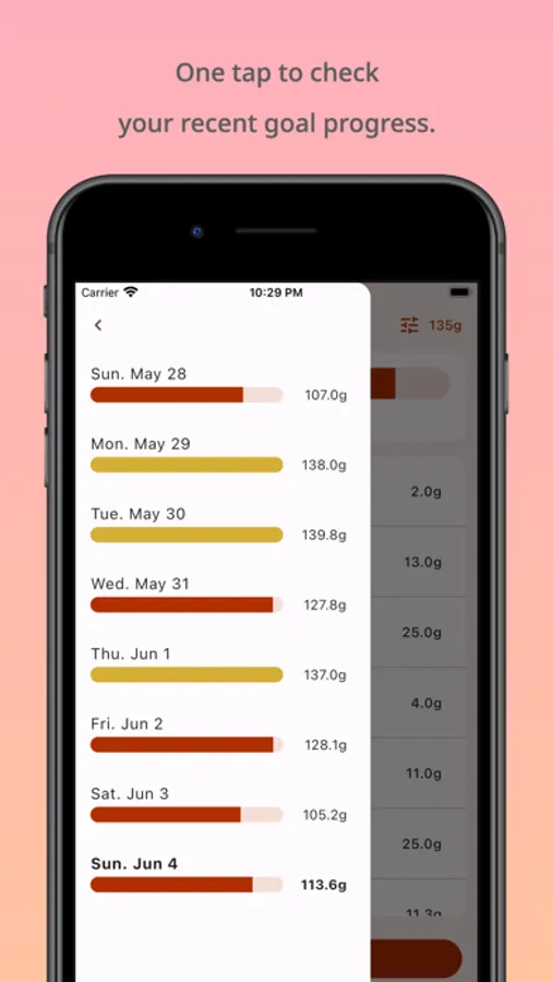 Stay motivated by tracking your weekly progress. Check how well you meet your protein targets through an easy-to-understand history view.